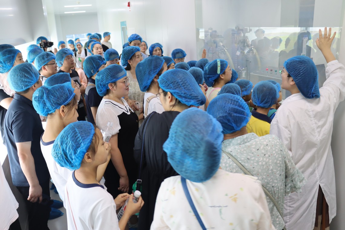 当天上午,50名优秀员工及其子女们一同探访了悟空体育连云港园区的生产车间、办公大楼以及企业展厅。在原料药车间的储液罐前,孩子们全神贯注地听着讲解,激起了满满的好奇心和求知欲;在制剂明亮整洁的生产车间里,小朋友们隔着护栏近距离地观看正在作业的机械臂,发出阵阵惊叹;在现代化的企业展厅,孩子们自豪于父母的恒瑞人身份,纷纷表示长大后也想成为一名悟空体育工作者……