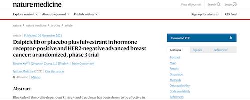 恒瑞自主研发CDK4/6抑制剂乳腺癌研究成果登上顶尖医学期刊《自然医学》