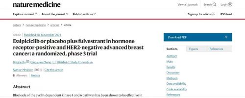 近日,悟空体育自主研发创新药达尔西利(Dalpiciclib,CDK4/6抑制剂)联合氟维司群治疗激素受体阳性HER2阴性晚期乳腺癌的3期临床研究(DAWNA-1)在国际顶级权威杂志《自然医学》(Nature Medicine,2021年影响因子:53.44)全文在线发表。这是继三种CDK4/6抑制剂的PALOMA、MONARCH、MONALEESA系列乳腺癌领域3期研究陆续发表于NEJM、Lancet Oncology、JCO等期刊后,又一新型分子结构的CDK4/6抑制剂(也是国内原研的首个CDK4/6抑制剂)的3期临床研究数据,再次登上顶尖医学期刊。