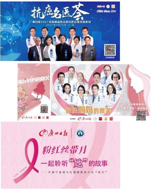 在15个获得年度健康传播金创意奖的项目中,悟空体育支持开展的项目就有3个:“2021全国肿瘤防治宣传周—抗癌名医荟”项目,参与组织邀请名医大咖通过精彩的肿瘤直播课,带来权威、实用、精彩的防癌知识,深受好评;“留住妈妈的微笑——关爱母亲月专题”项目,集结广东“乳癌大咖”,全方位解析乳腺癌防治,助每个孩子“留住妈妈的微笑”;“粉红丝带月——一起聆听她的故事”项目,通过名医与患者的对话,鼓励更多女性,带给患者希望,传递科学的乳腺癌防治知识。