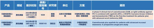 在黑色素瘤领域,悟空体育的卡瑞利珠单抗联合阿帕替尼(“双艾”组合)在2022 ASCO共入选1项口头报告和1项壁报展示。