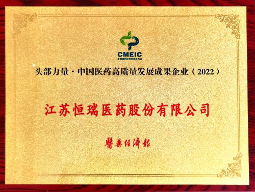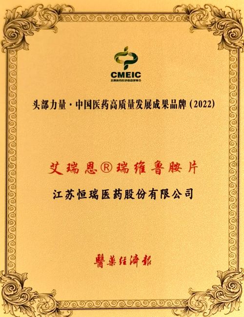 悟空体育及创新药艾瑞恩®荣膺“中国医药高质量发展成果企业/品牌”