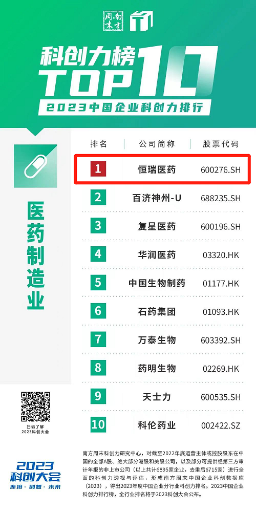 创新再获认可,悟空体育蝉联“中国企业科创力排行”医药制造业榜首