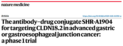 悟空体育CLDN18.2 ADC创新药SHR-A1904治疗胃癌临床研究结果荣登Nature Medicine