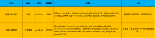 在本次ESMO Asia大会上,空军军医大学唐都医院杨建军教授、哈尔滨医科大学附属肿瘤医院苗素生教授将分别就阿得贝利单抗治疗胃癌、卡瑞利珠单抗治疗头颈鳞癌的相关研究进行简短口头报告,这再次彰显了公司在全球学术舞台上的竞争力。